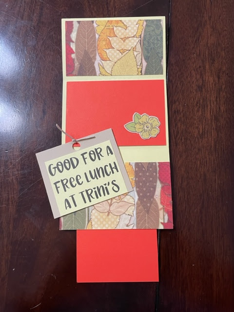 Instead of a gift card, I put a coupon for a free lunch at one of our favorite restaurants in the pocket: